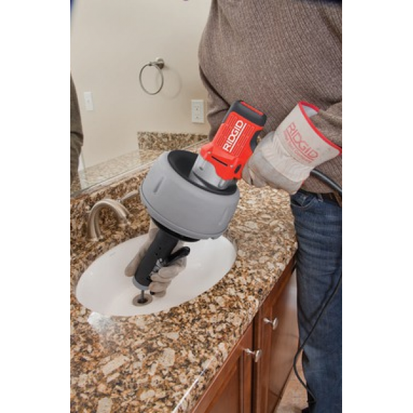 • Automatický posun špirály do potrubia: Pokročilý dvojcestný autoposuvom AUTOFEED udržuje ruky i pracovisko v čistote. Špirála sa automaticky posúva vpred a vzad do potrubia, vďaka elektrickému pohonu. Smer špirály ovládate stlačením smerovačov na rukoväti.